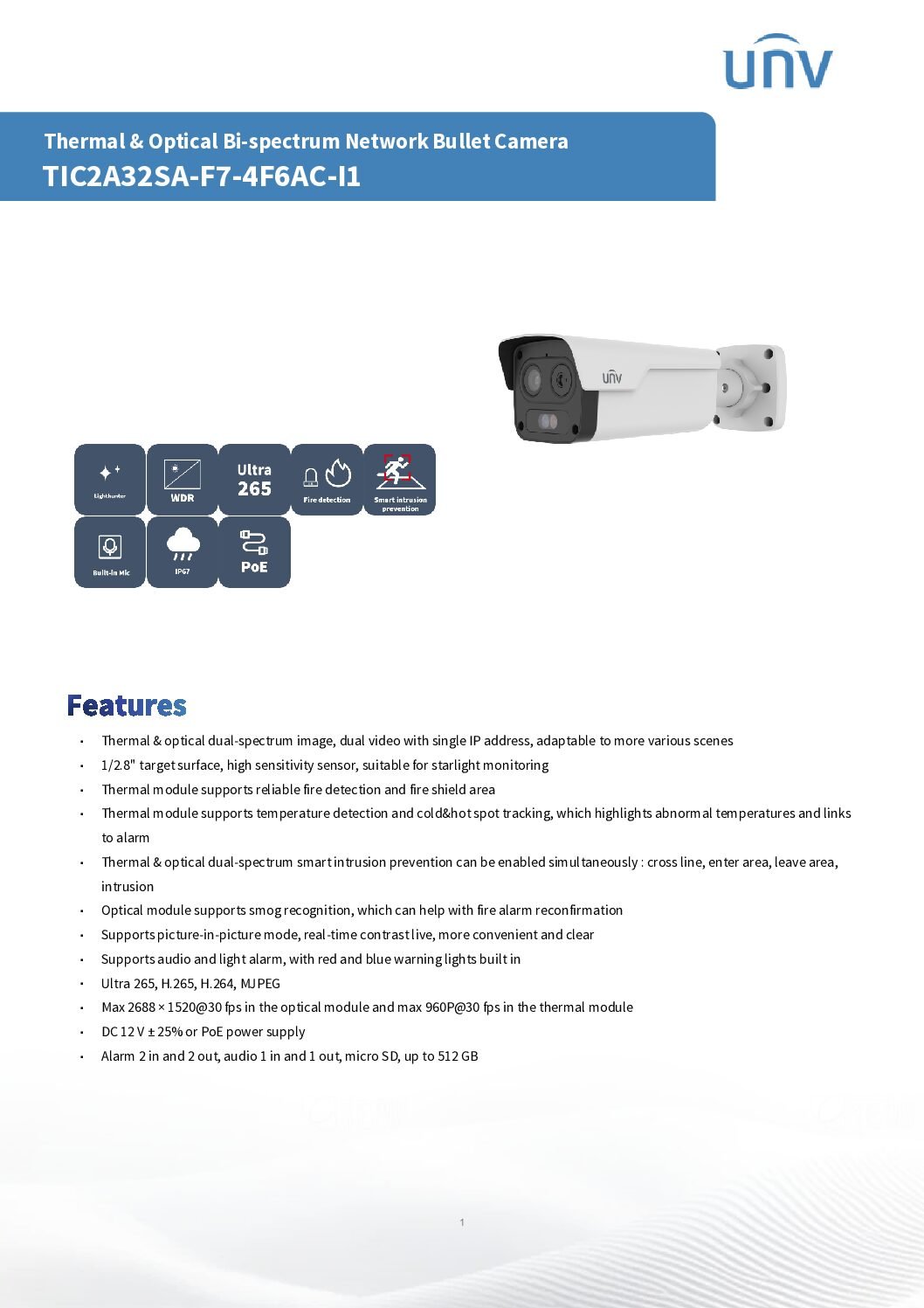 Thermal & Optical Dual-spectrum Bullet Network Camera TIC2A32SA-F7-4F6AC-I1